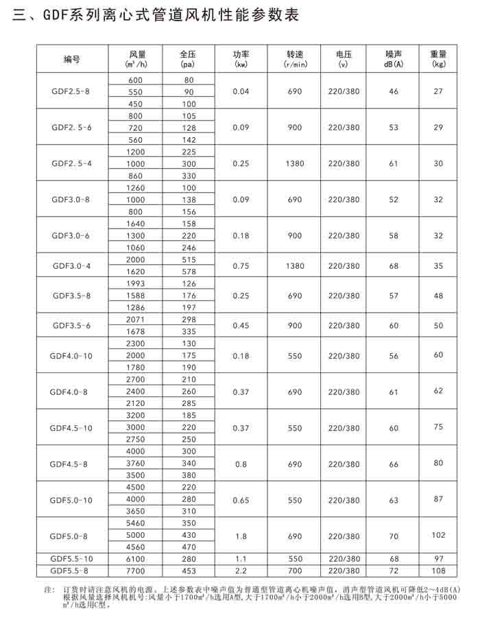 三、GDF 系列低噪聲離心管道風(fēng)機(jī)