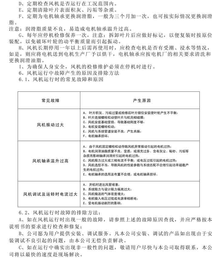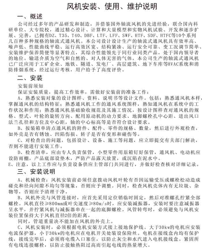 一、風(fēng)機(jī)選用參考、安裝維護(hù)使用說明、常見故障分析、訂貨注意事項(xiàng)