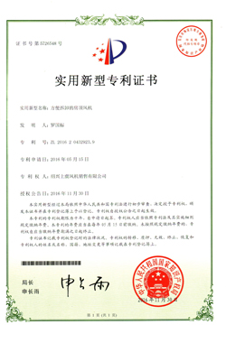 通道風機風筒支撐裝置專利證書