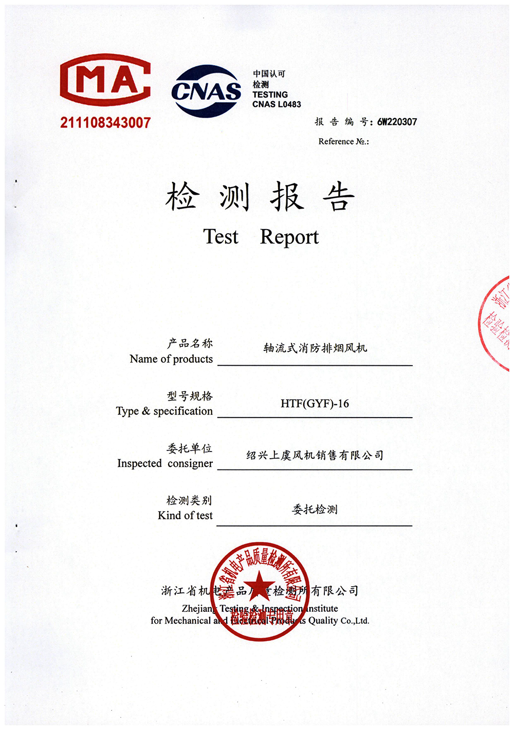 當前位置: 首頁 > 企業資質 > 產品檢驗報告